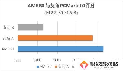 为了全面验证AM6B0的综合性能,测试团队在多种办公场景下对其进行了基准测试。在PCMark 10测试中,AM6B0在512GB、1TB等多个容量点的综合评分均超过了4000分,不仅在同系产品中表现领先,也优于市场上其他同类产品。这一得分充分证明了AM6B0的综合性能,无论是在日常办公、娱乐场景,还是在视频剪辑、工业制图、3D渲染及大型游戏等中高强度专业应用中,AM6B0都能为用户提供流畅的使用体验。